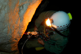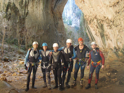 El pasado viernes día 13 de febrero, un grupo de compañeros de nuestro club, (los cuatro primeros de la foto) y dos compañeros pertenecientes al Grupo de Investigaciones Subterraneas de Xerez, realizarón la Travesía Integral de Garganta Verde, ubicada en la localidad de Zahara de la Sierra.